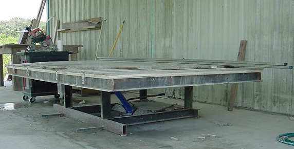 Steel frame with 8-ton hydraulic jack no finished top and not painted. 2" center pin with pillow block bearings Table comes ready to use no assembly required.